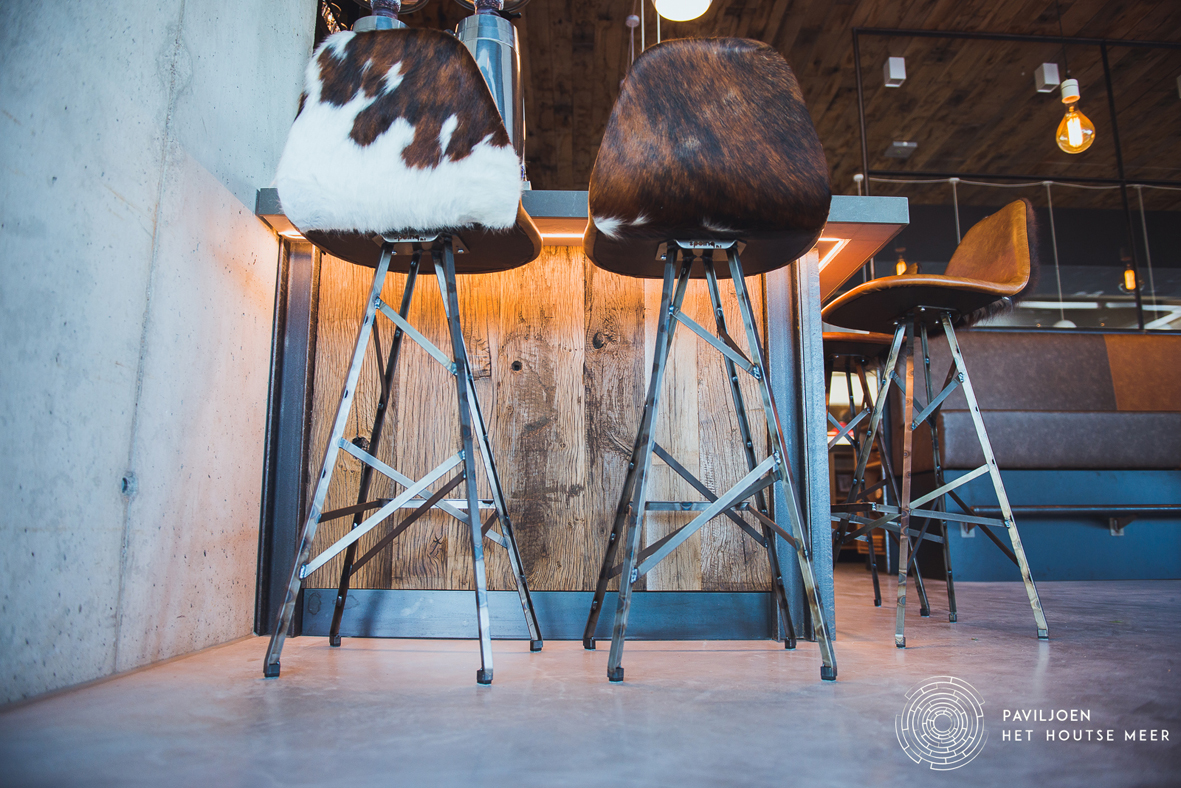 De zitting wordt het meest gestoffeerd in combinatie met een (kunst)leder. Aangezien koeienhuiden per huid verschillen heeft u altijd een unieke barstoel. Het onderstel is van staal, en dit kan weer naar keuze worden gecoat in diverse kleuren. Er zijn 2 zithoogtes mogelijk; 65cm en 75cm.