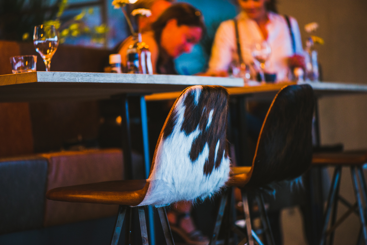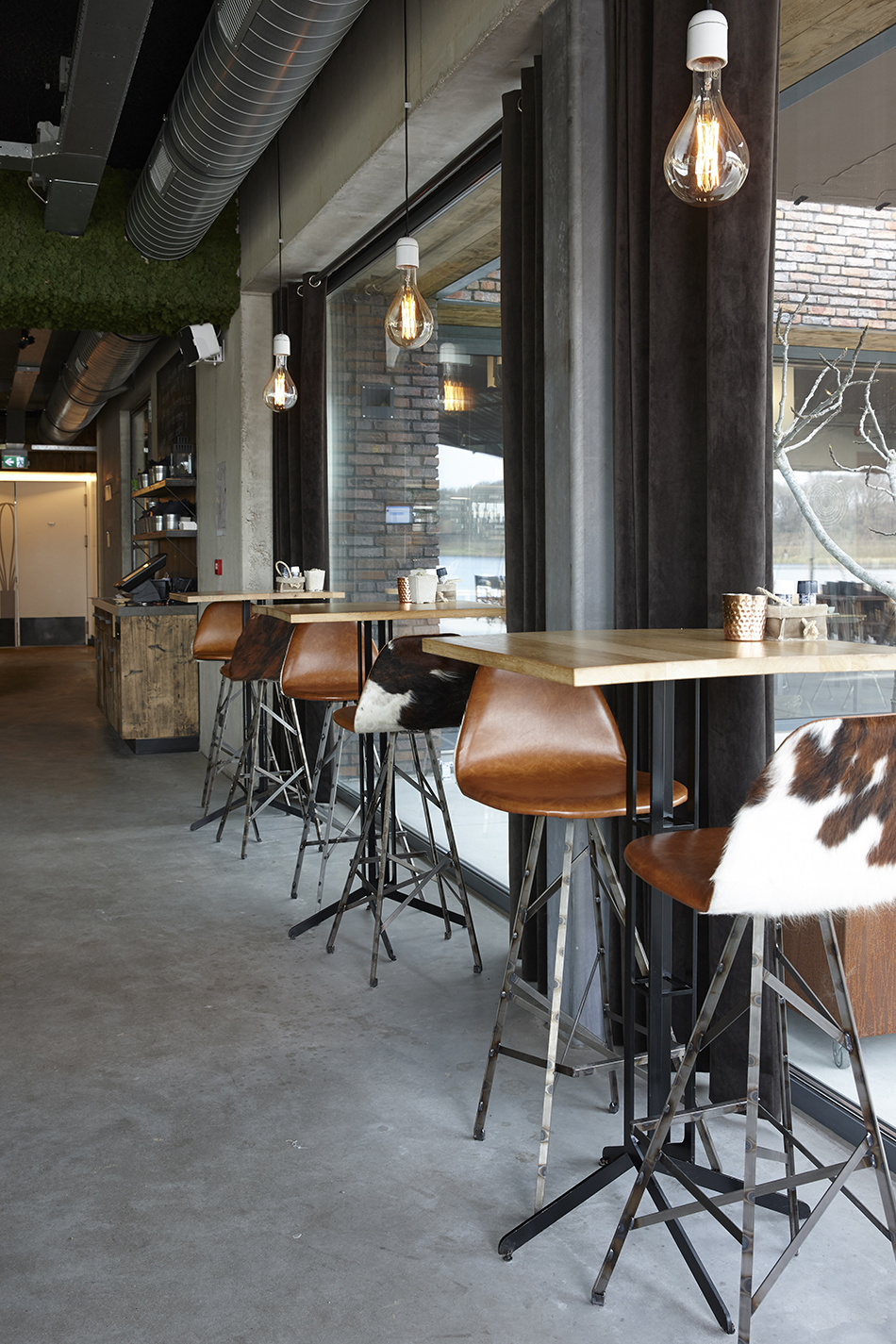 Deze variant is bekleed met een koeienhuid op de rug van de zitting waardoor deze een stoere en warme uitstraling krijgt. De koeienhuid is alleen mogelijk op de zitting met hoge rug.