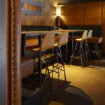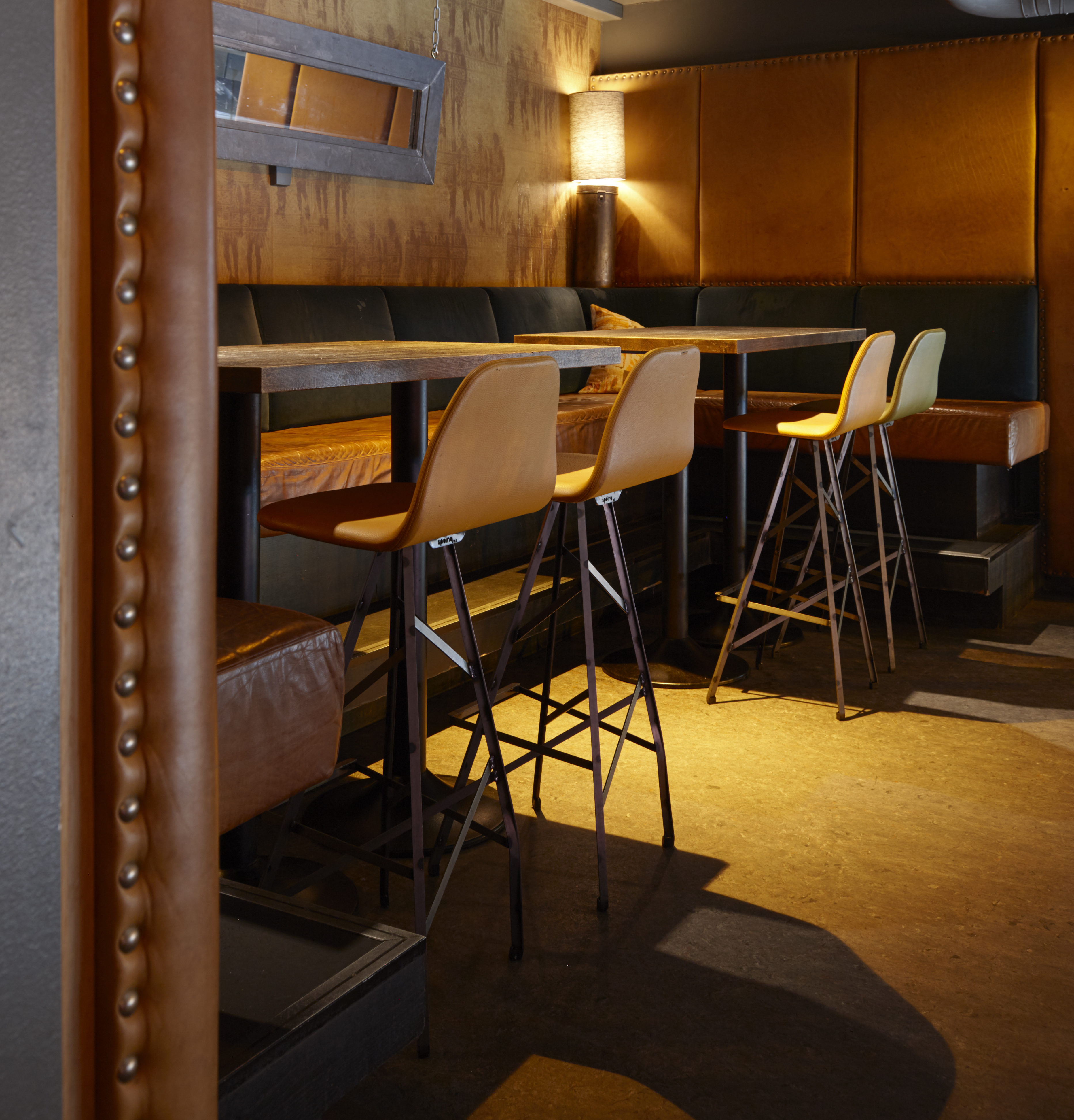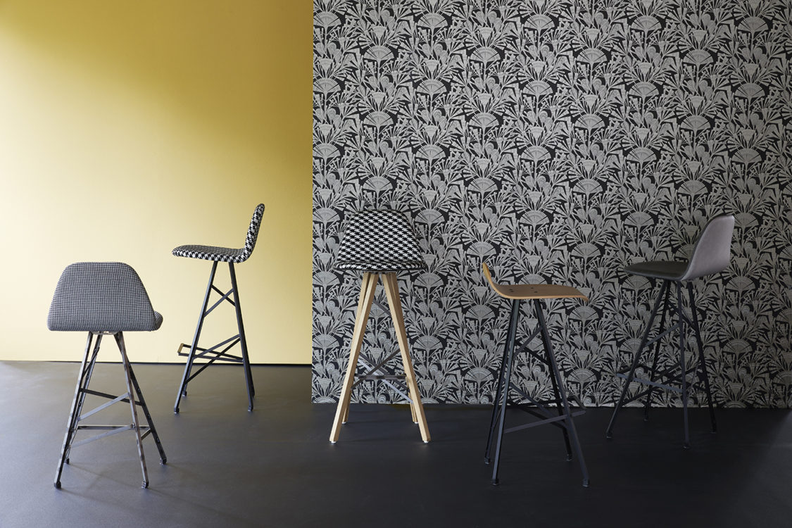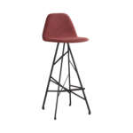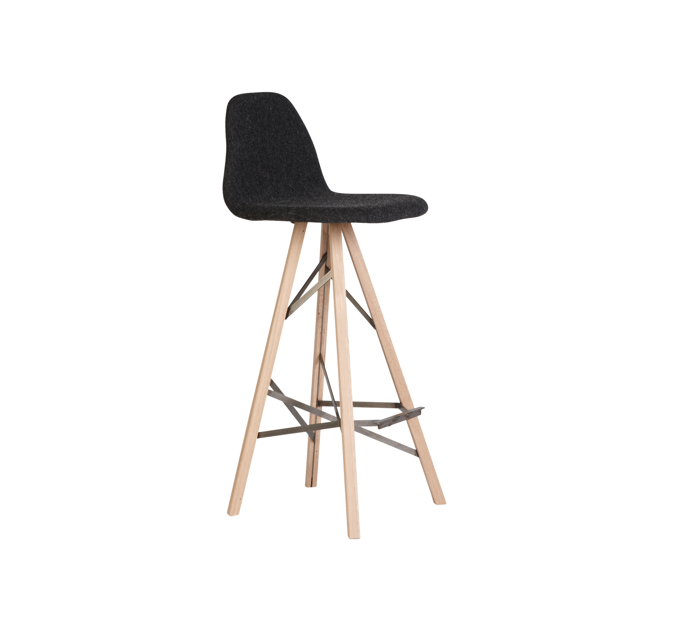 De zitting is gestoffeerd en kan met zowel een lage rug als een hoge rug. Het onderstel is van staal, en dit kan weer naar keuze worden gecoat in diverse kleuren. Er zijn 2 zithoogtes mogelijk; 65cm, voor aan bijvoorbeeld de keukenbar, en 75cm.