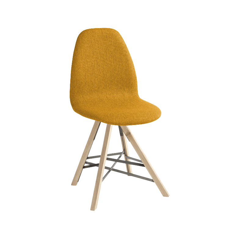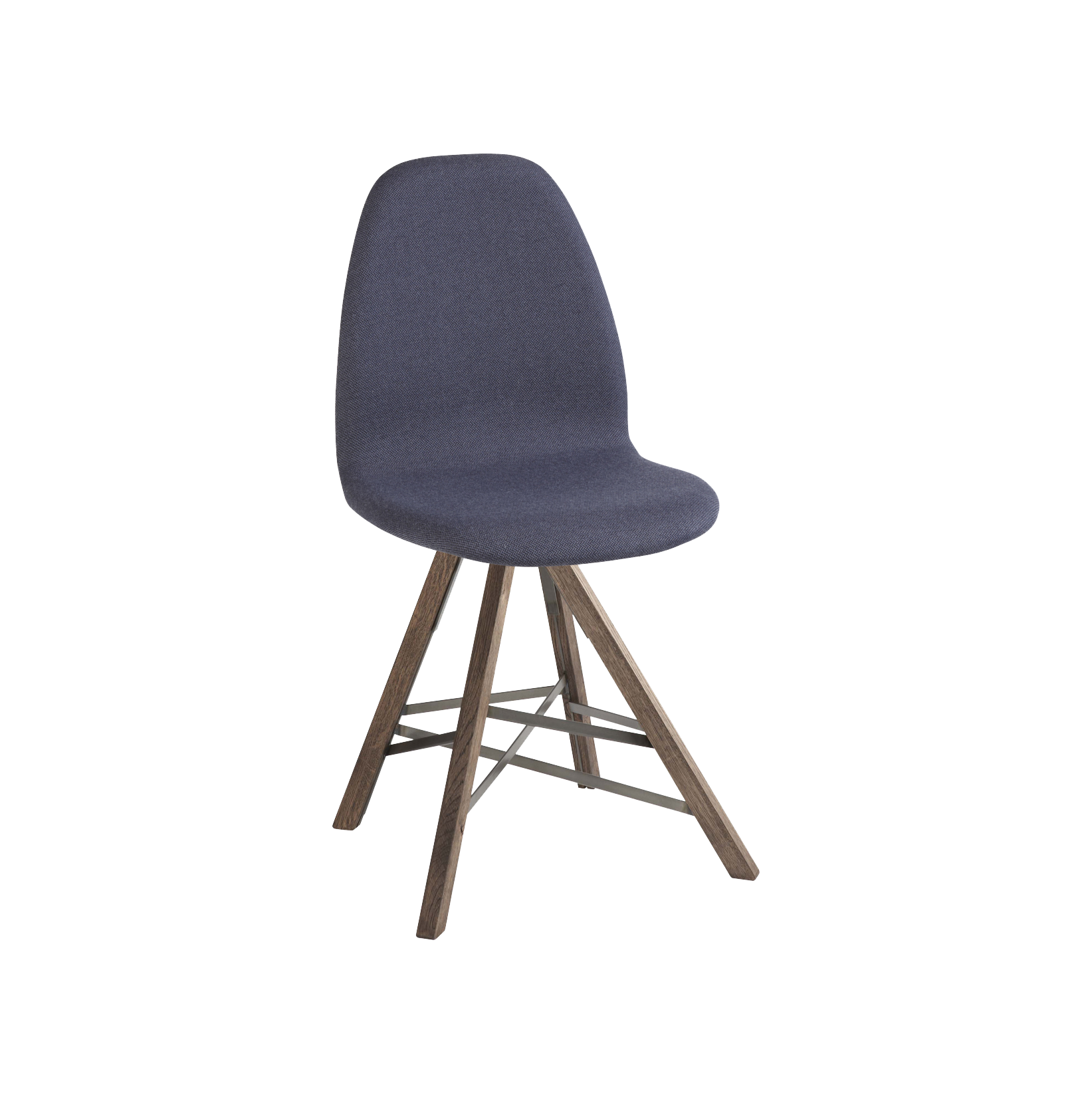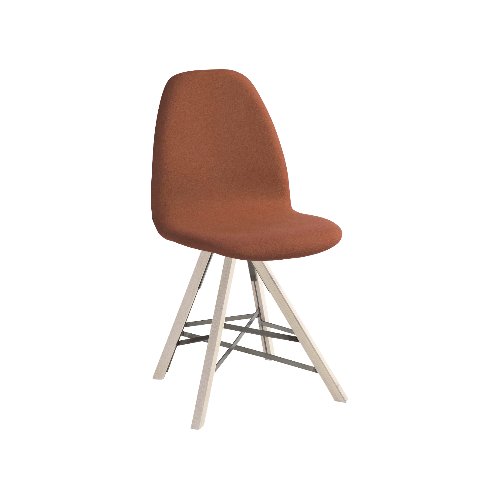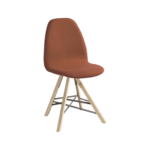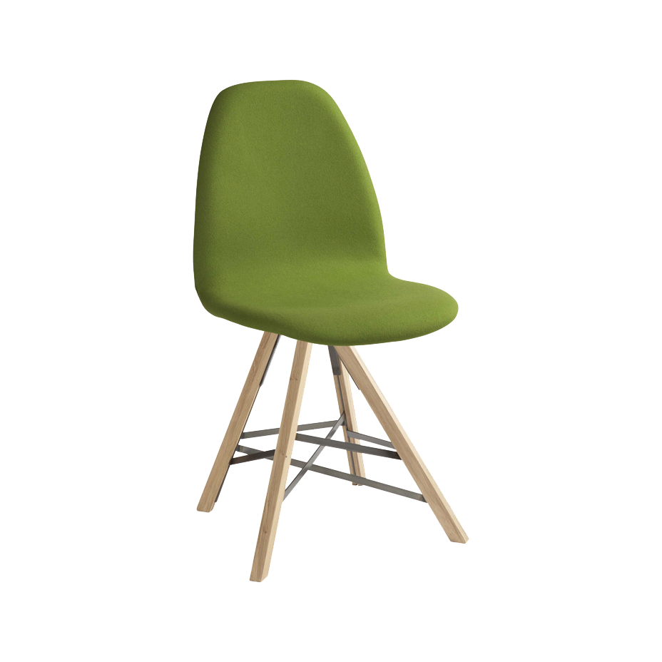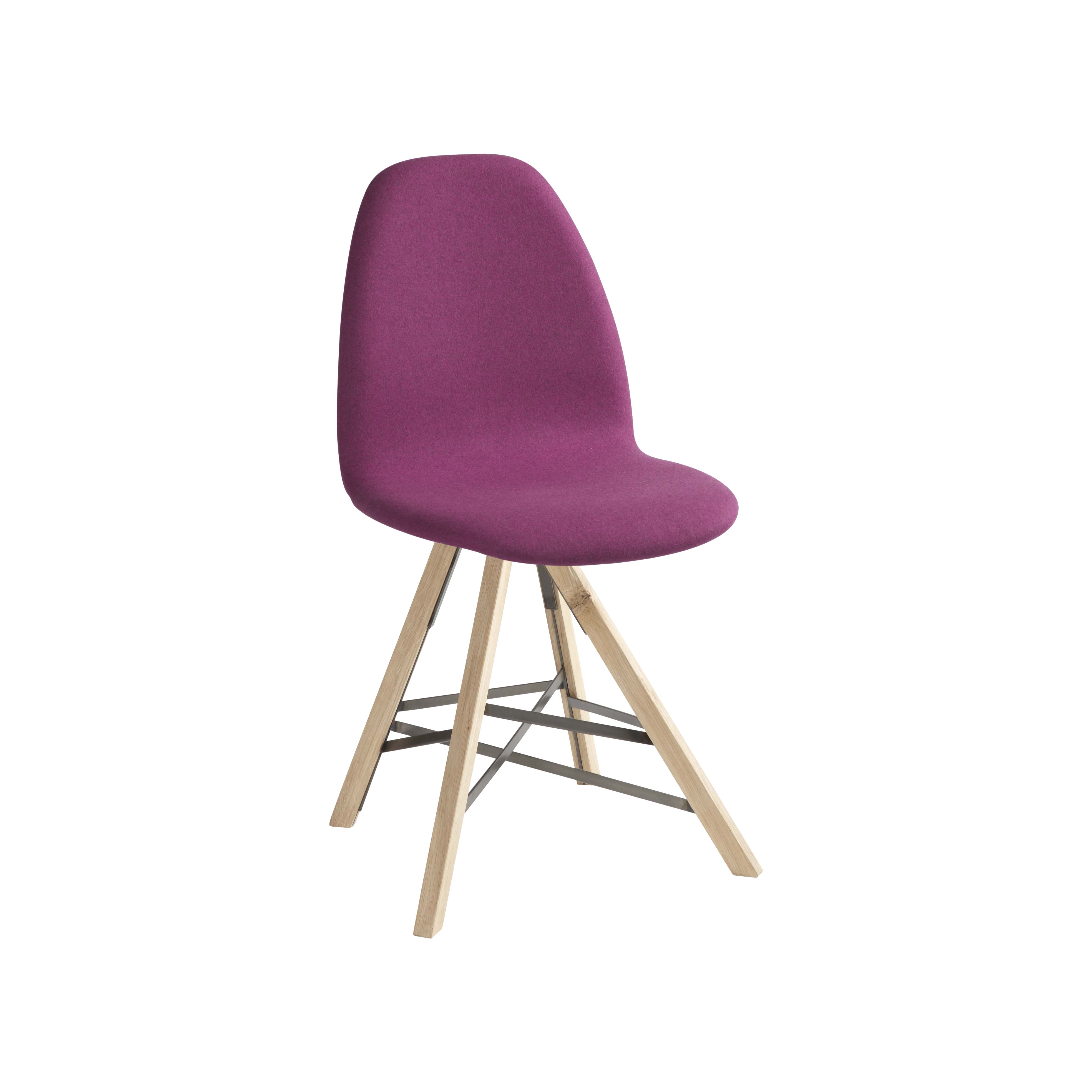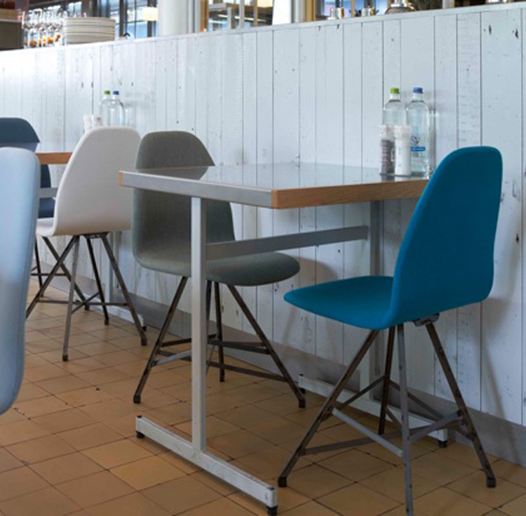 De zitting van de Piramide is gestoffeerd en de stoel kan met of zonder armleuningen. Deze Piramide uitvoering heeft massief eikenhouten poten over het stalen frame. U kunt ook kiezen voor een puur stalen onderstel en voor een houten zitting.