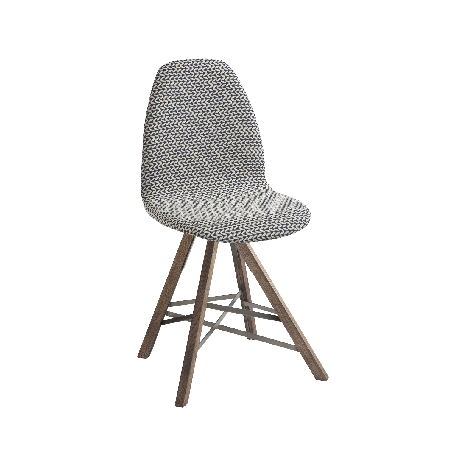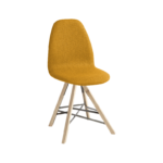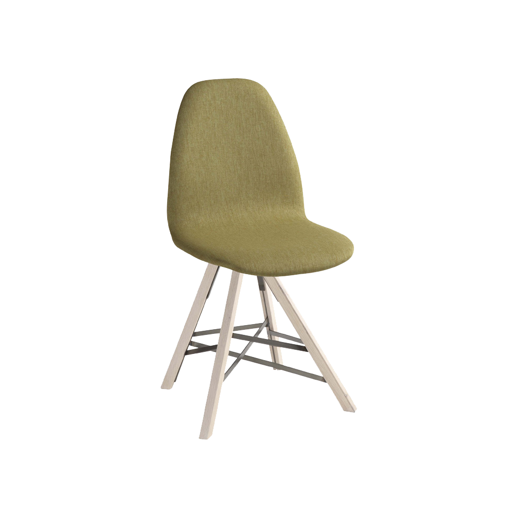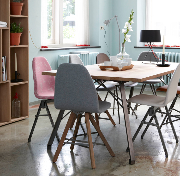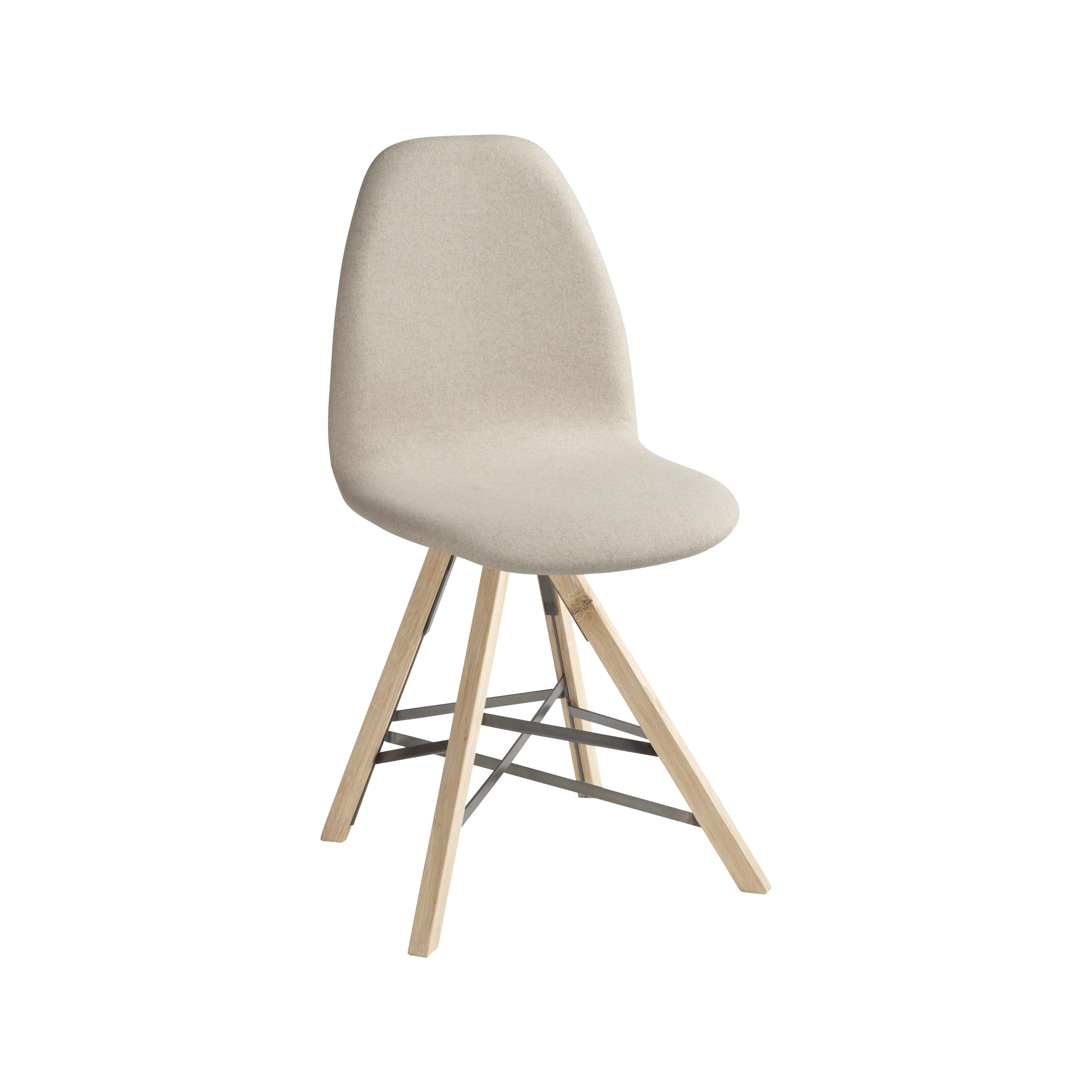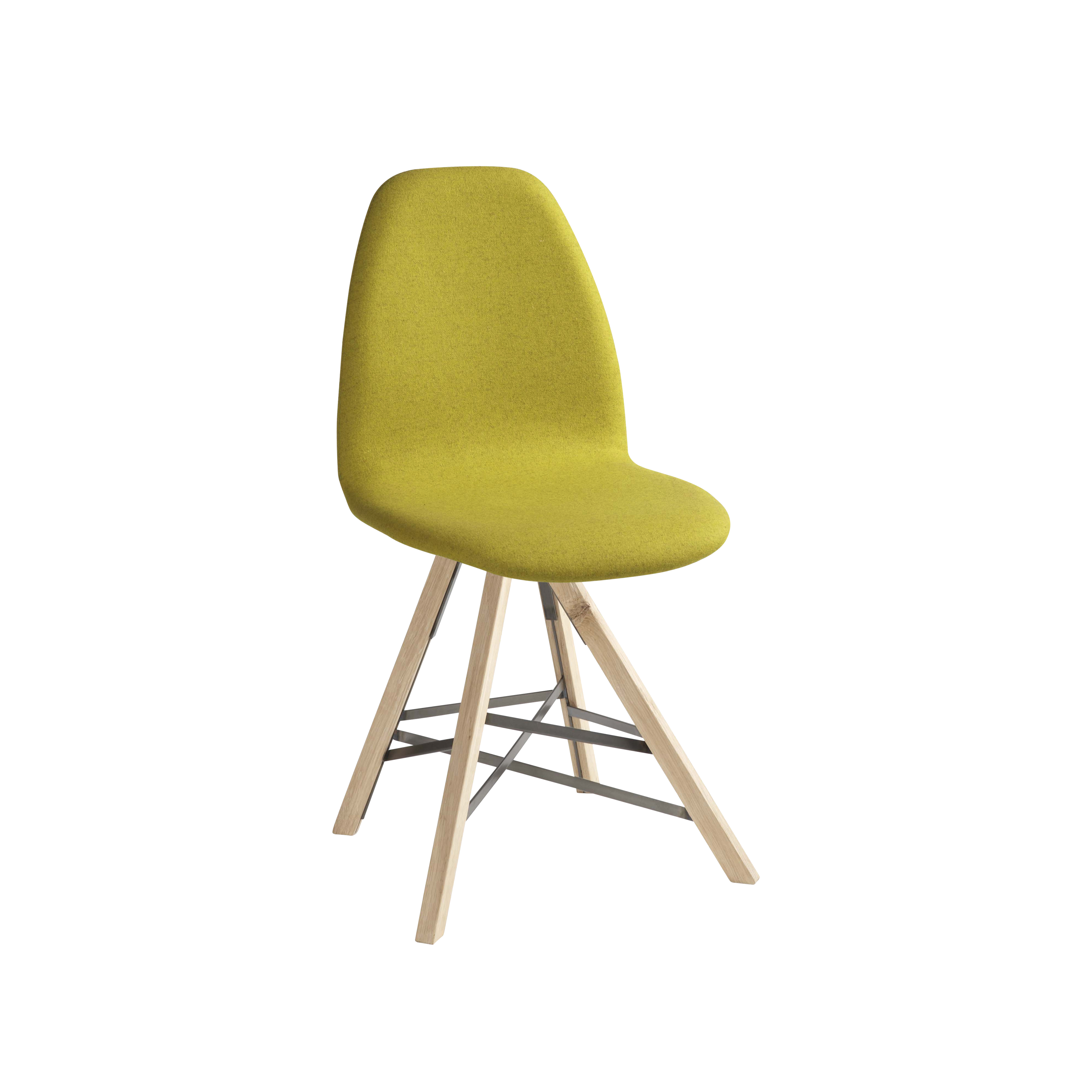 De zitting van de Piramide is gestoffeerd en de stoel kan met of zonder armleuningen. Deze Piramide uitvoering heeft massief eikenhouten poten over het stalen frame. U kunt ook kiezen voor een puur stalen onderstel en voor een houten zitting.