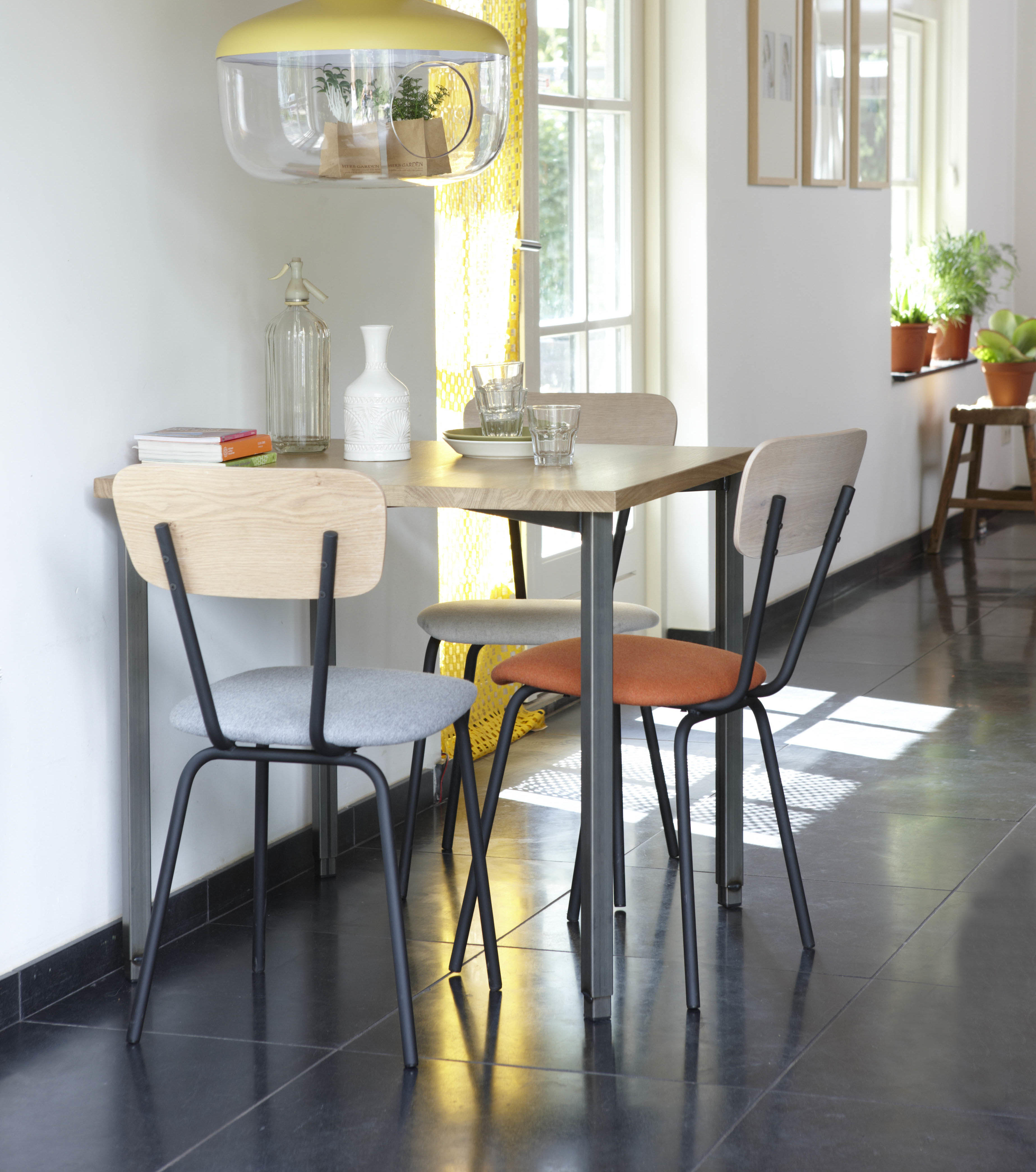 De stoel Spranq is afgeleid van het keukenstoeltje zoals we deze allemaal kennen. Klein, ideaal in kleinere ruimtes en naar eigen wens te combineren.