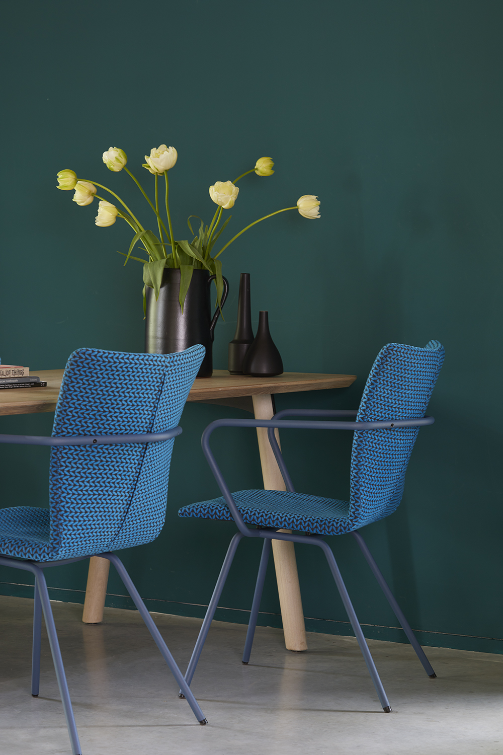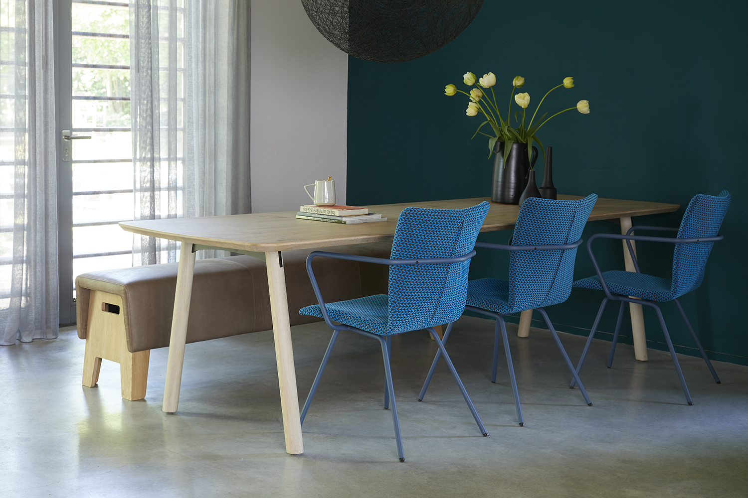 Metaal in antraciet, zwart, wit of groen. RAL-kleur op aanvraag.