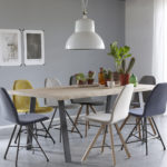 De stalen poten kunnen in diverse kleuren gecoat worden. Het eiken blad is behandeld met Woodlock waardoor deze bestand is tegen vlekken.