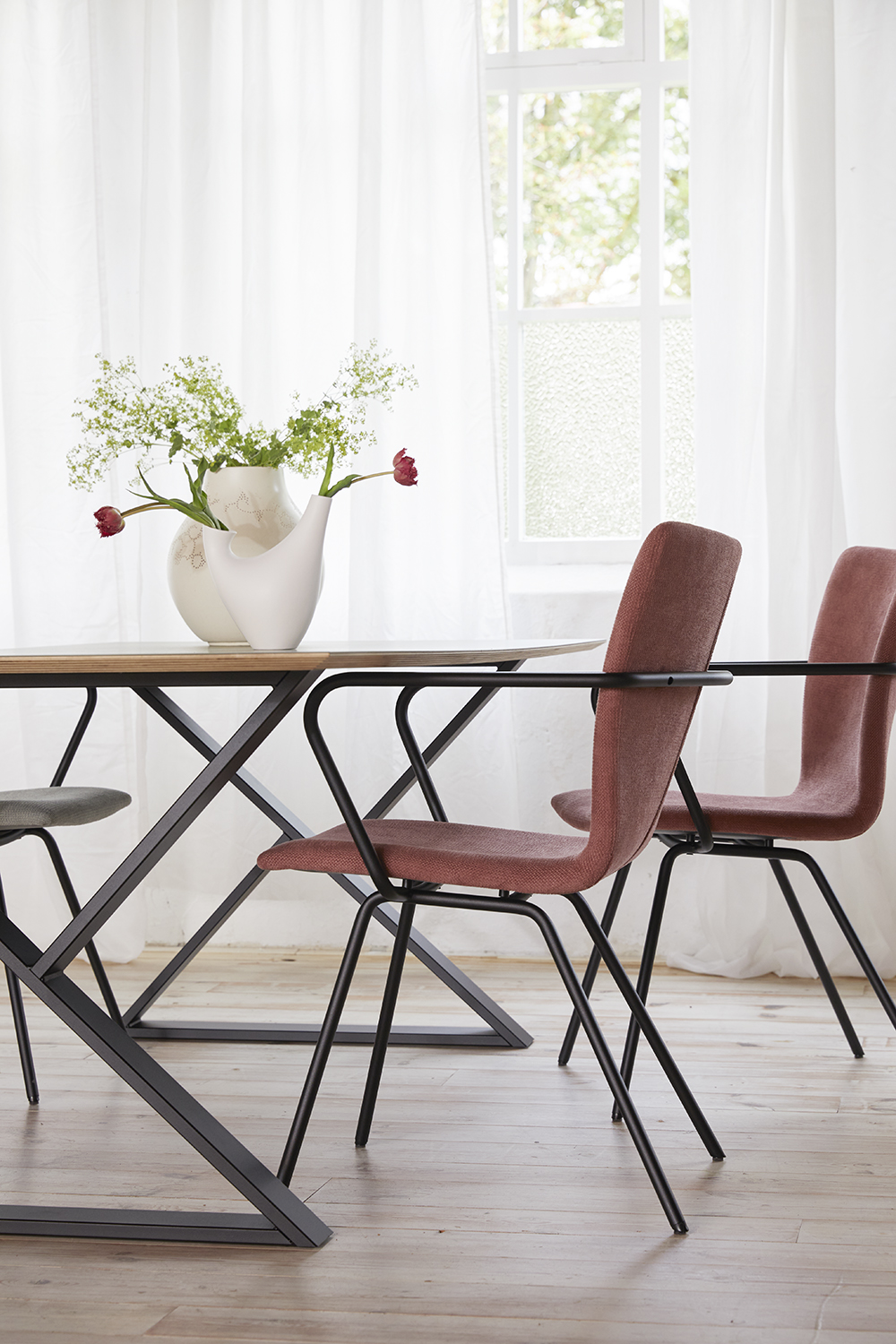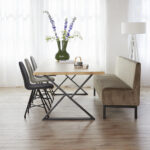 Dan is tafel Cross de perfecte keuze. Het stalen onderstel is zo gemaakt dat je makkelijk kunt aanschuiven met stoelen of een bank. Leverbaar in vele afmetingen en ieder blad is uniek. Het eiken blad van de tafel Cross is al vlekwerend behandeld met Woodlock.