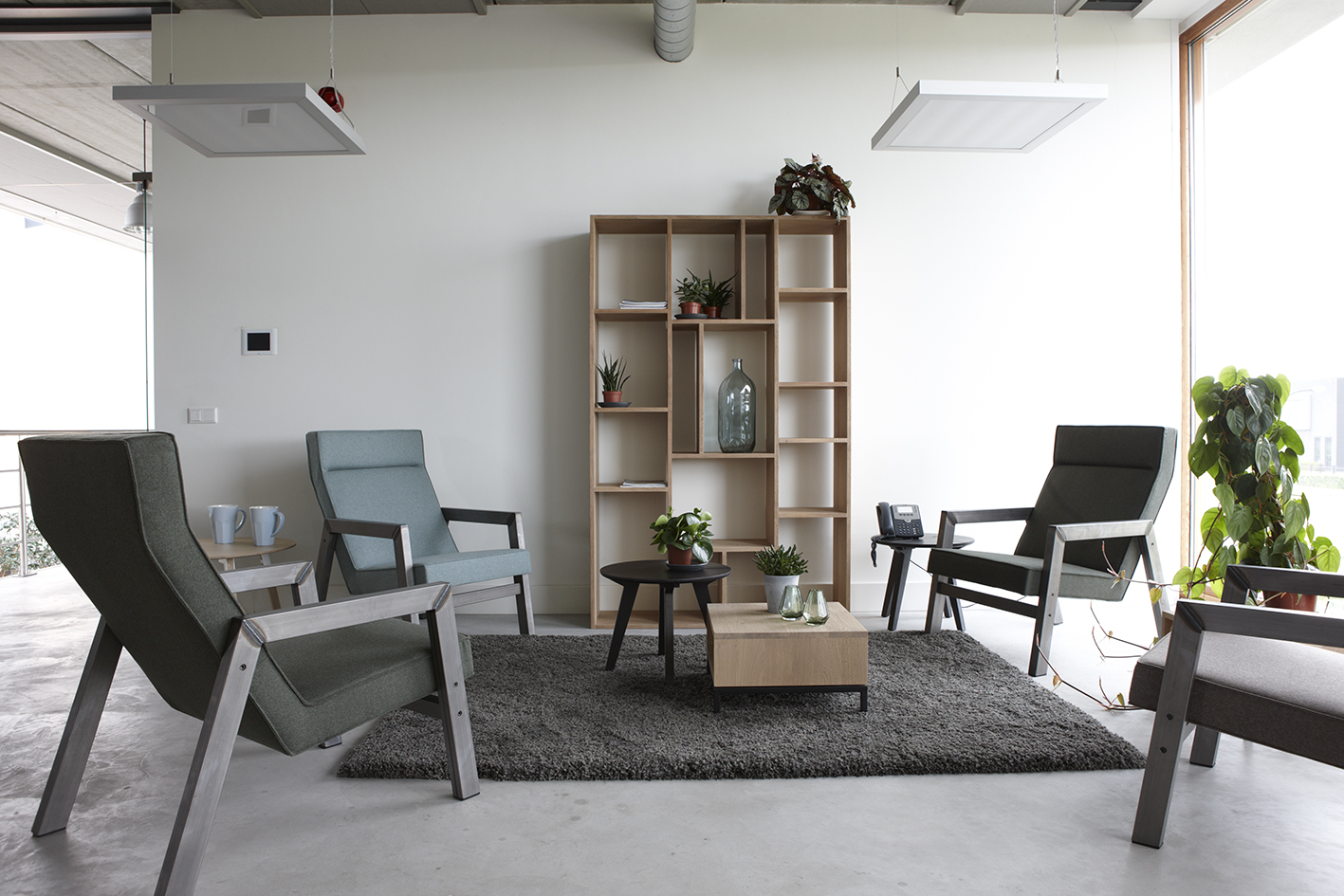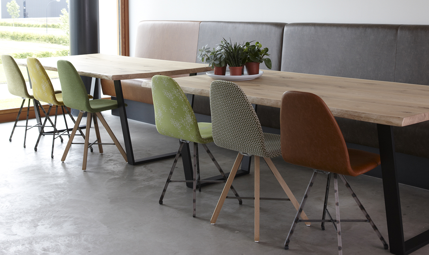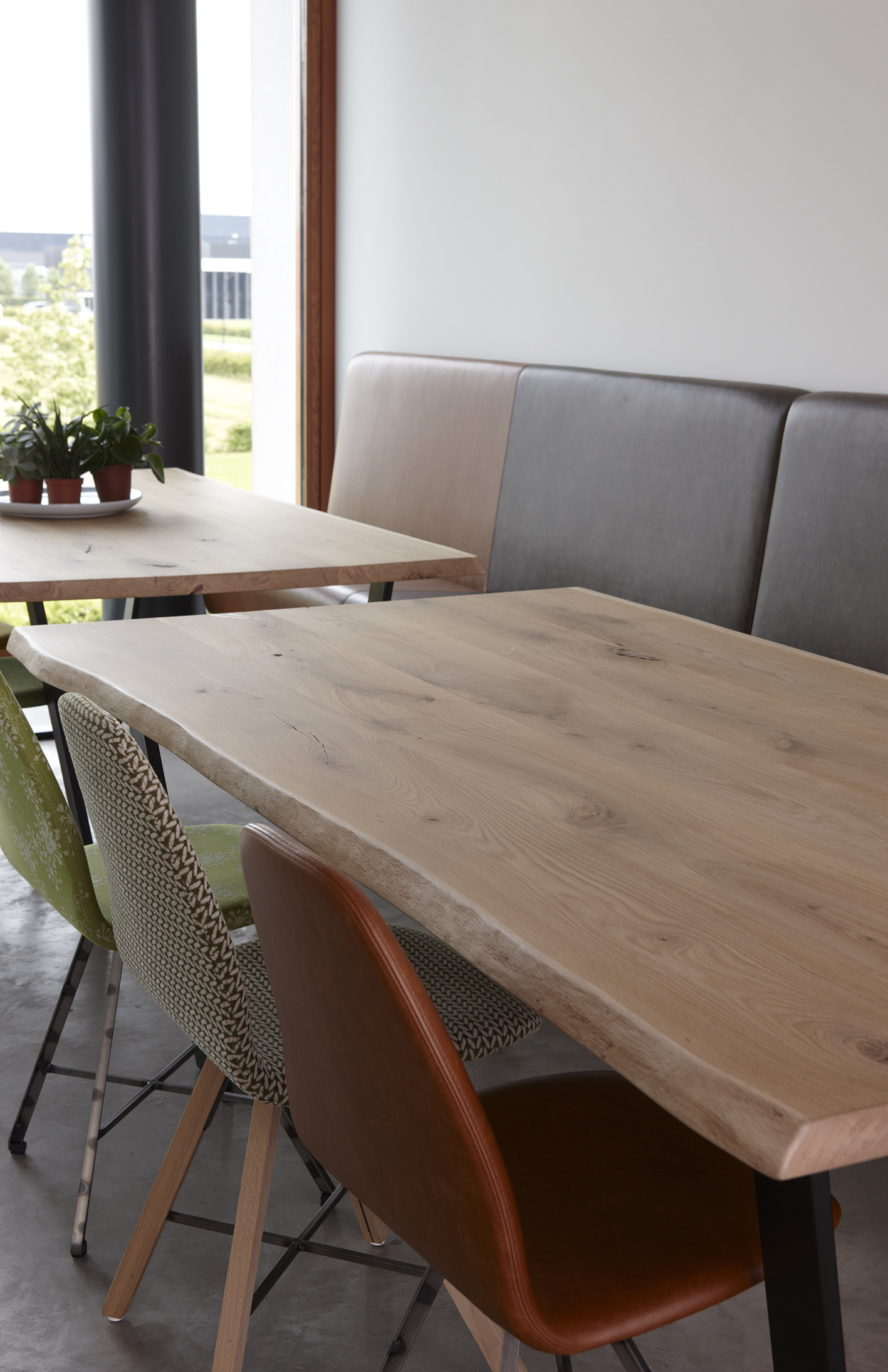 2Connect connects . We are proud that we can make a contribution to this connection between people in the company’s lunch-area . The different colors in combination with the solid oak gives it a warm and relaxing atmosphere.
