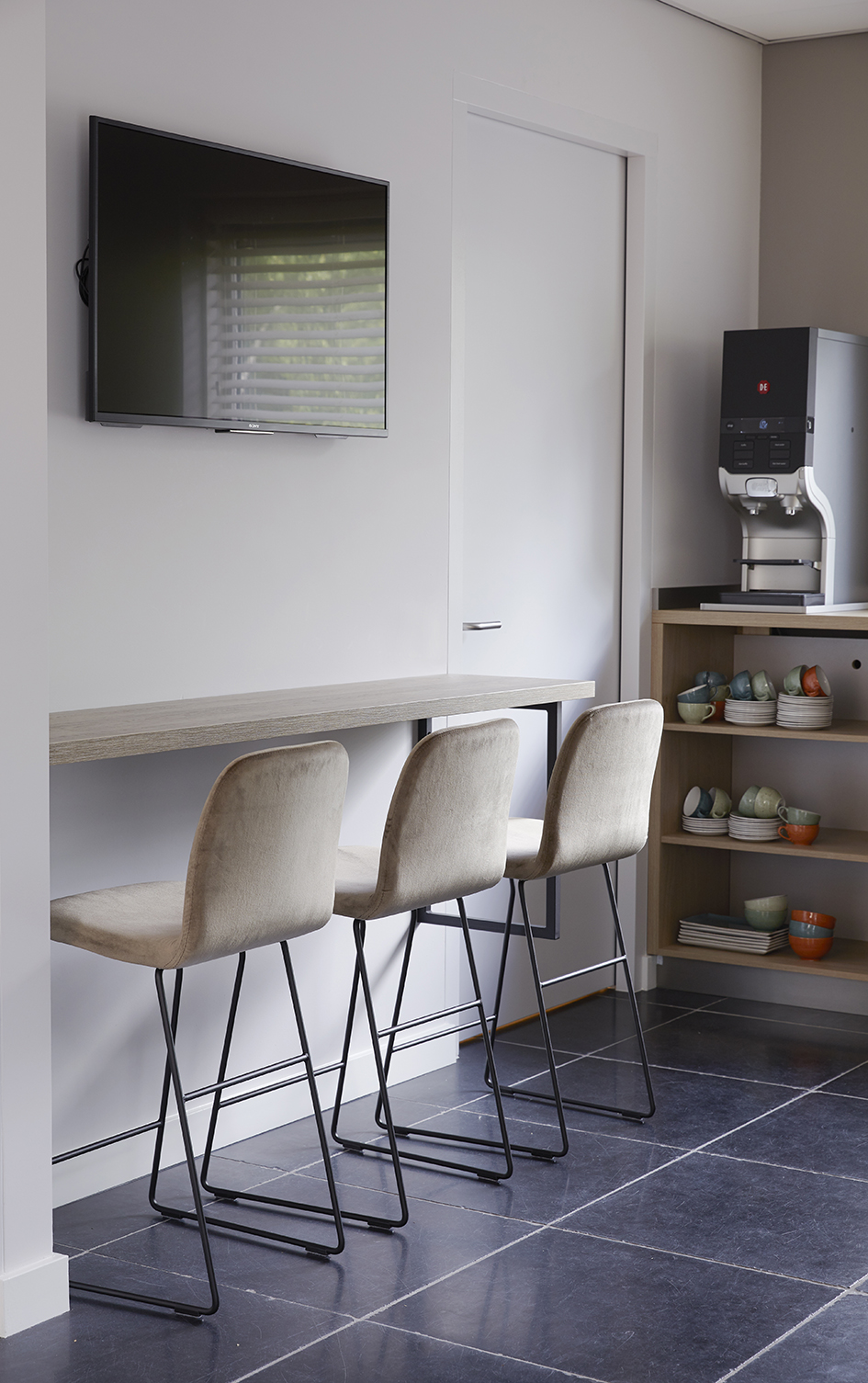 Uitvaartcentrum ’t Laar is een modern en eigentijds uitvaartcentrum en crematorium. Er zijn verschillende ruimten geschikt voor grote groepen, maar er zijn ook sfeervolle familiekamers. Het kleurrijke interieur is ontworpen door Studio Bloemex met gebruik van diverse Spoinq meubelen waaronder krukjes Macaron, stoel Quin en tafel Bart.