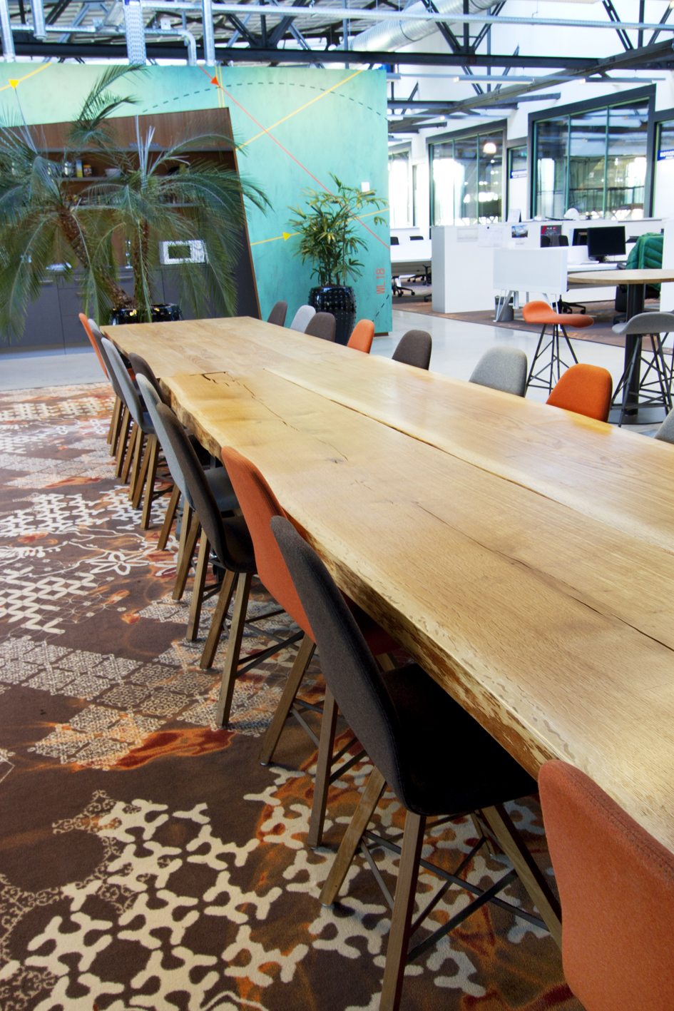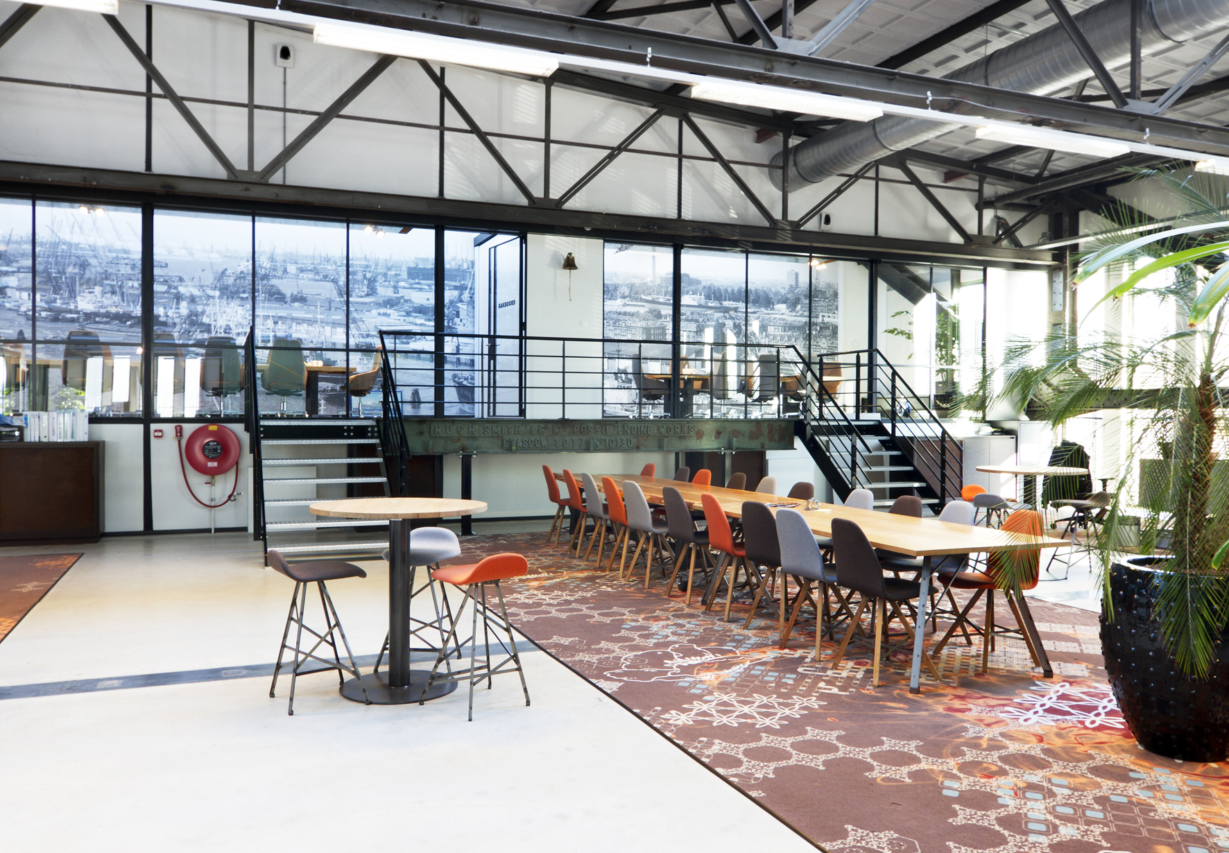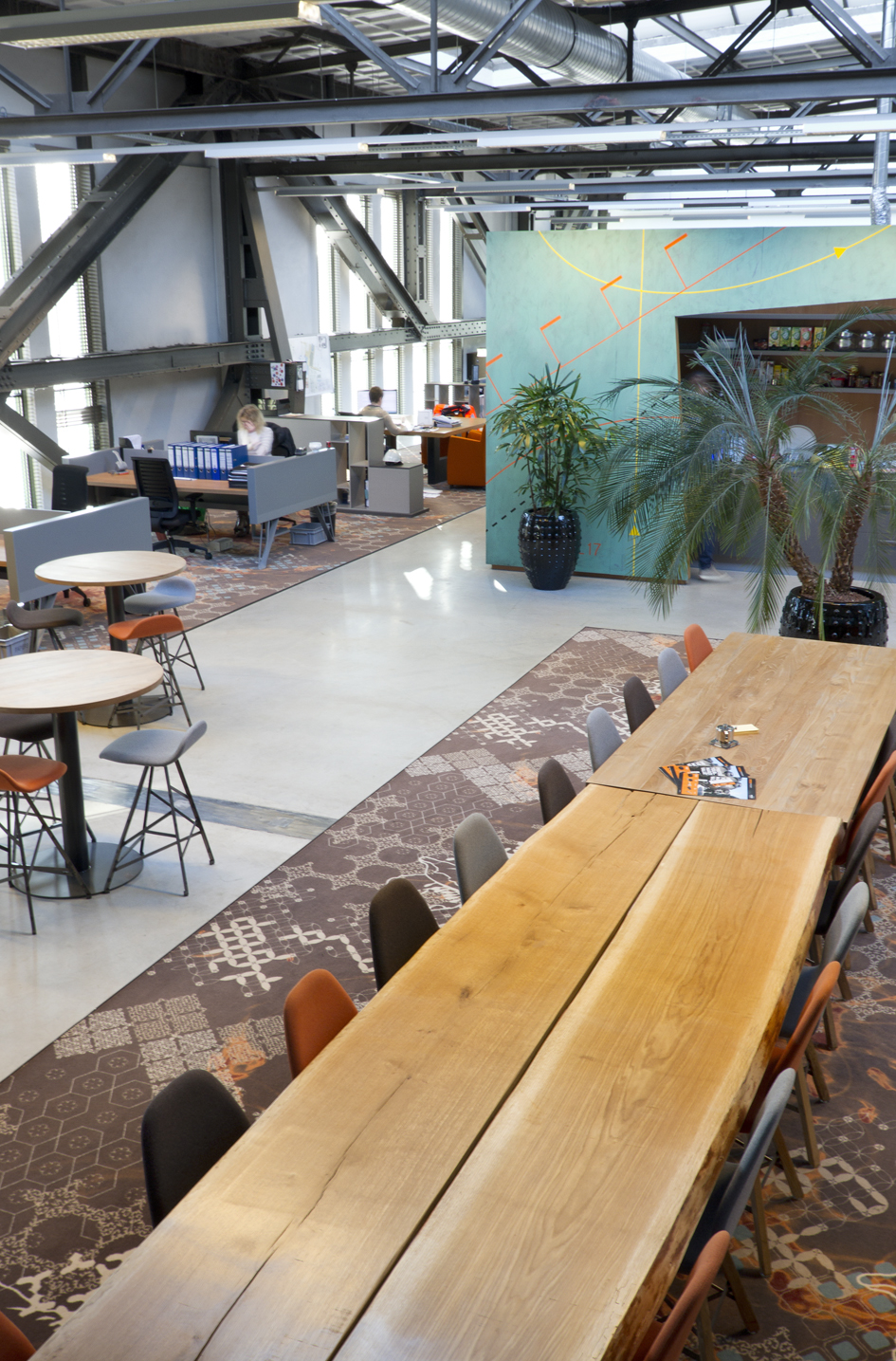 Industrieel erfgoed verandert in een sfeervolle kantooromgeving. In een oude scheepsbouwwerf in Rotterdam slaagden de interieur-architecten van Sprank erin om het interieur vloeiend te laten overgaan naar de 21e eeuw. De industriële accenten van het staal komen terug in de stoere onderstellen van de tafels Straight en stoelen Square. De warme kleuren in combinatie met het hout en de mogelijkheid van hoog- en laag zitten maken dit tot een bijzonder geslaagd project.