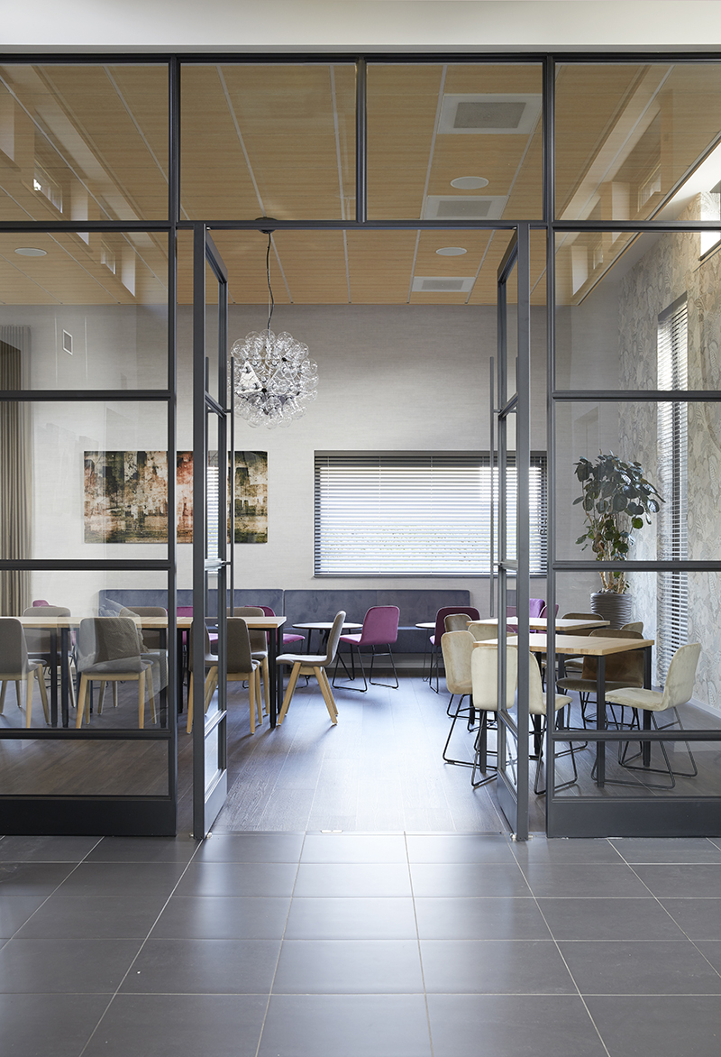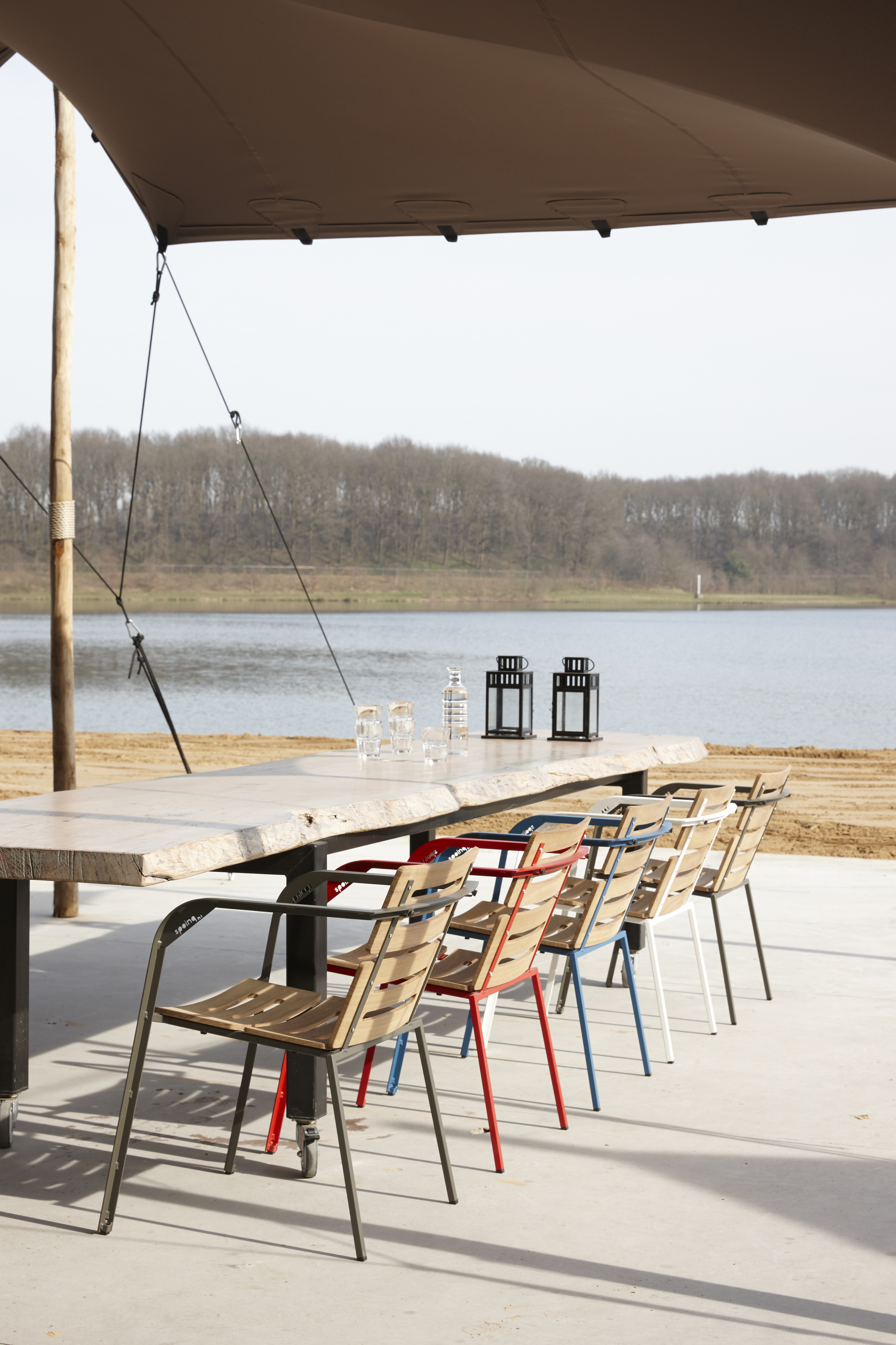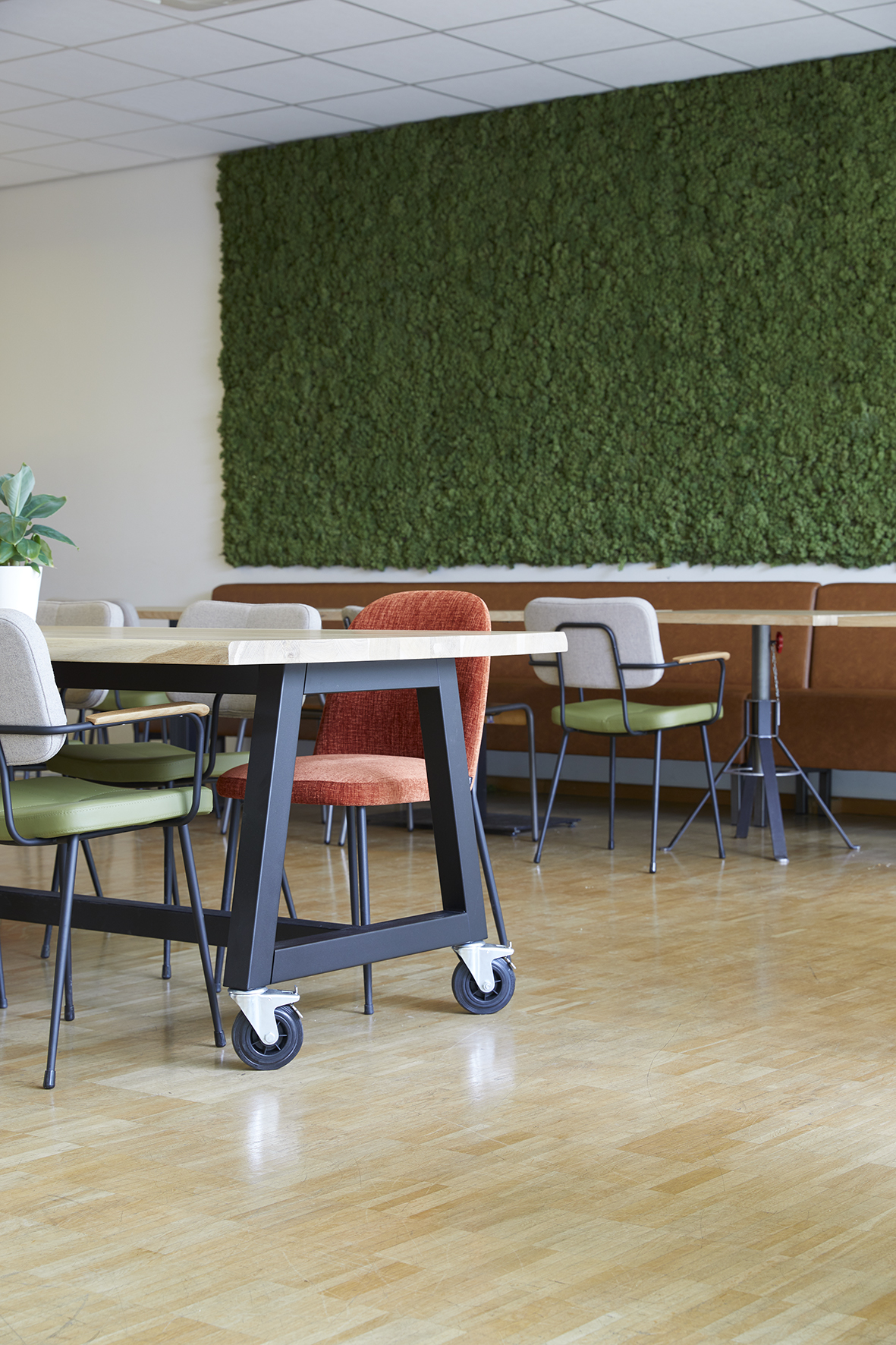Les bureaux avaient besoin d’une atmosphère chaleureuse et accueillante. C’est devenu un lieu ou les collegues travaillent, se rencontrent et déjeunent ensemble. Notre table Wessel, Table Bo, banc Lars et tabourets Pyramide sont partie du design. Design: MG Dutch Design Projet: DeRijks